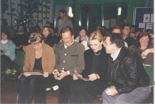vrnl: Karl Mayr, Rektorin Maria Zierer, Bürgermeister Heinz Eichinger, Zita Eichinger | ||||||||||||||||||||||||||||||||||||||||||||||||||||||||