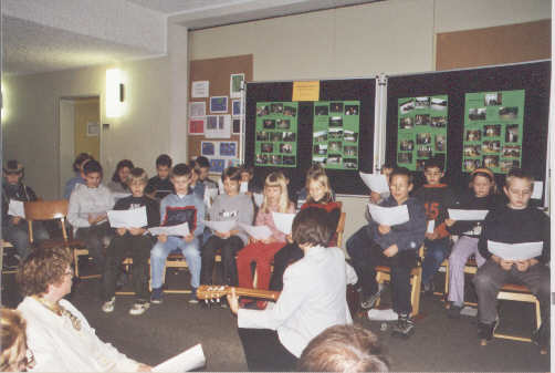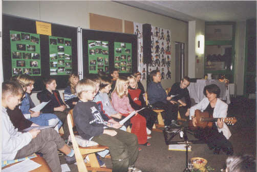 | Die Klasse trägt das Lied "Von guten Mächten wunderbar geborgen" vor. | ||||||||||||||||||||||||||||||||||||||||||||||||||||||||